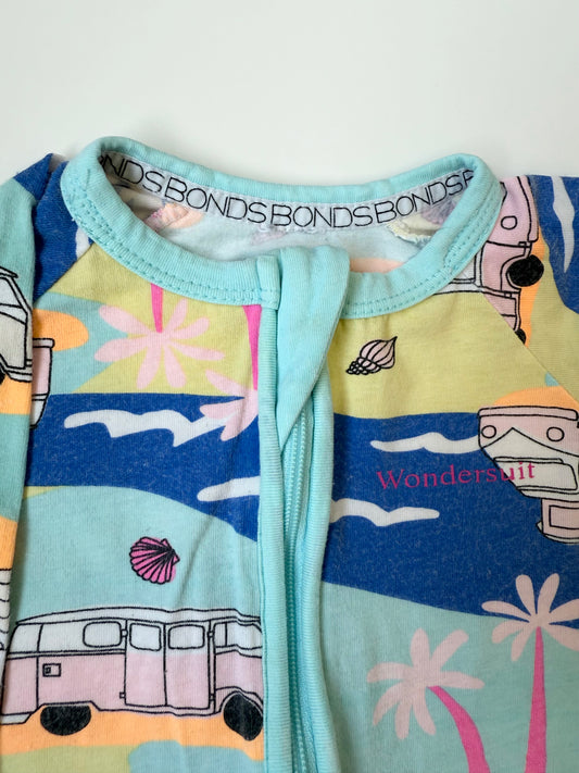 Bonds Wondersuit Blue & Neon Camper Van Sleeper Romper (3-6 Months)