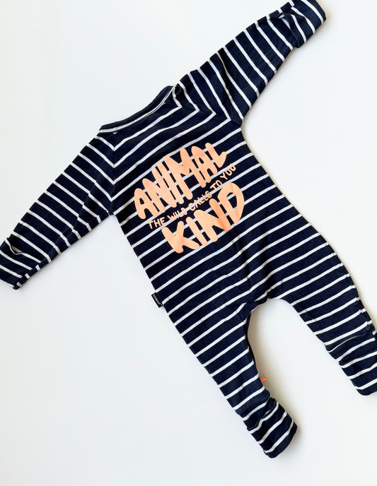 Bonds Wondersuit Blue & White Stripped Panda Sleeper Romper (0-3 Months)