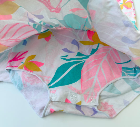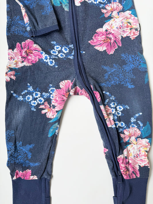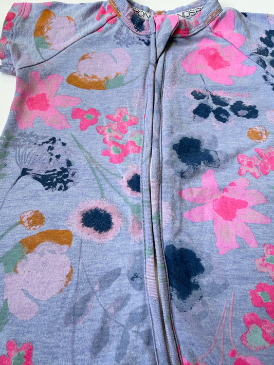 Bonds Wondersuit Blue & Pink Floral Sleeper Romper (6-12 Months)
