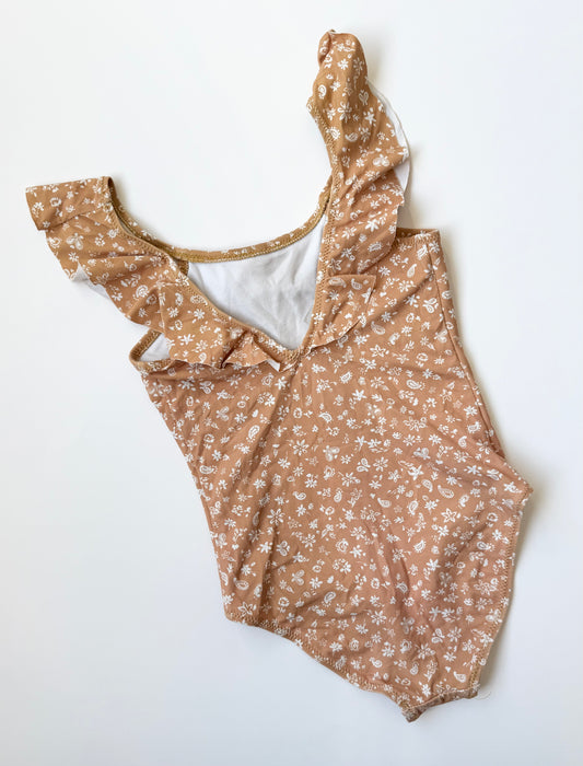 Zara Light Brown & Dainty White Florals Ruffle Collar One Piece Swimsuit (4-5 Years)
