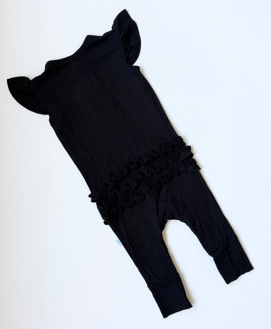 Posh Peanut Black Ribbed Sleeveless Jumpsuit (3-6 Months)