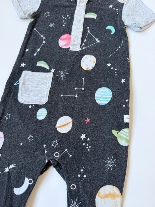 Little Sleepies To The Moon & Back Sleeper Romper in Grey/Blue (3-6 Months)