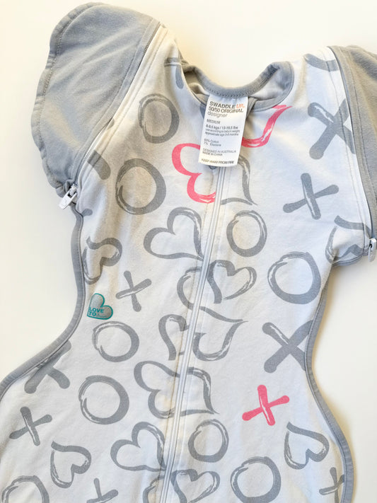 Love to Dream Grey & Pink XOXO Hearts Swaddle Up 50/50 Original Designer (Medium)