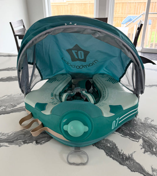 Mambobaby Baby Non-Inflatable Swim Float With Canopy in Airplane Green
